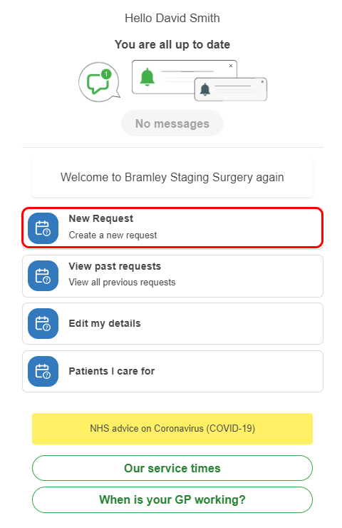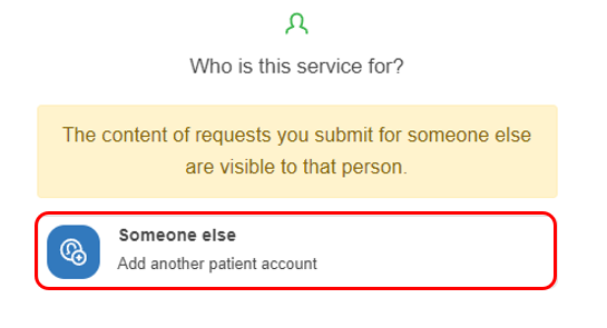 You can also view the list of people under your care, add new patients under your care, and initiate a request on behalf of them via the 'Patients I care for' option in the main menu