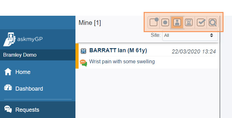 Click on this filter button to see all of the patient requests assigned to yourself.
