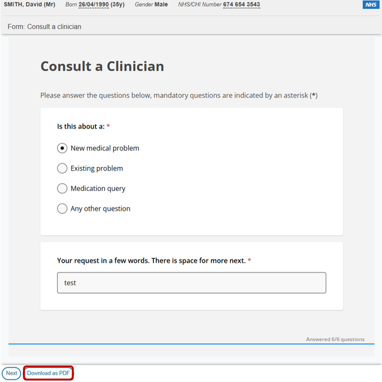 You can click on any form that has been submitted and use the 'Download as PDF' option to save a copy of the form as a PDF, useful if you need to attach a completed form to a referral: