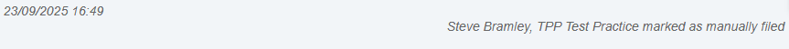 Where practices have chosen to do so, 'Unfiled' requests can be viewed from the ‘Filing issues’ section. This will allow you to view all requests which were ‘copied to clipboard’ instead of filed via automated writeback and verify that the request has been filed to the patient record. From the ‘Unfiled’ list, the request can be reviewed and then marked as ‘manually filed’, with an audit trail to reflect this activity.