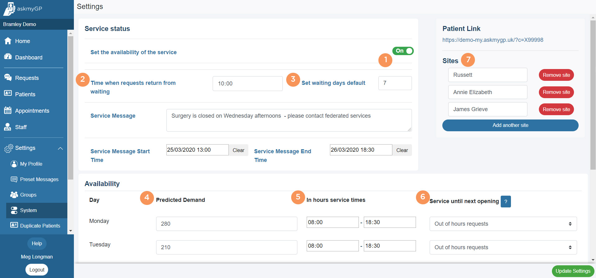 This will automatically change all the areas in askmyGP where sites are shown, eg the dashboard.